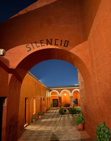 Al velo del silencio, que aunque inquietante y poderoso, se refleja en la energía que sentimos los que caminamos su interior, con reflexiones al salir y caminar en las calles empedradas de Arequipa.